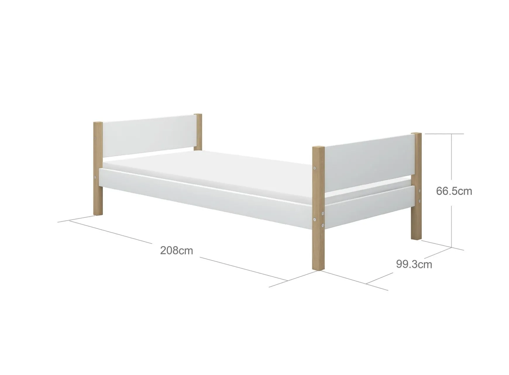 NOR single bed with head- and foot board. Use the bed for the child, who has grown out of the junior bed. Add a safety rail to give the child extra safety. Or use the bed for teens and make a comfortable atmosphere in the room. By adding higher legs to the bed it enables you to transform the single bed to a mid-high or high bed.